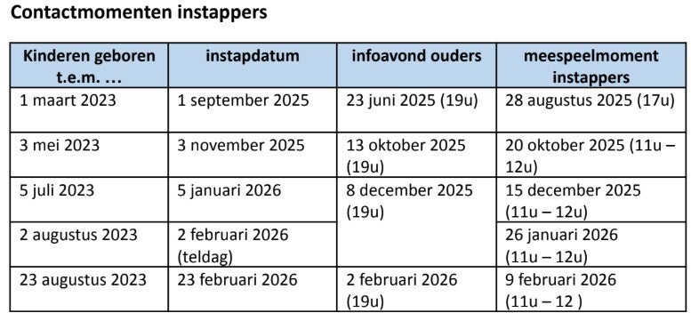 VASTE INSTAPDAGEN VOOR DE KLEINSTEN